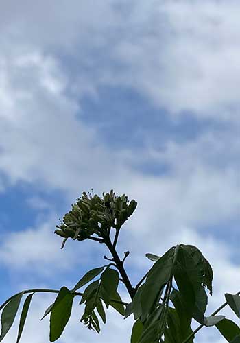 ほったらかしで斜めに成長してしまったカレーリーフの大株。思い...