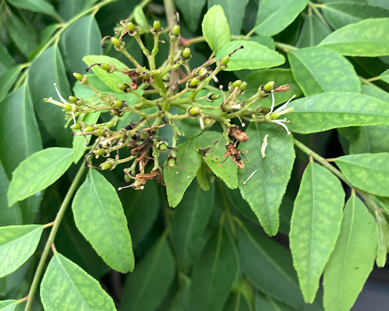 2回目の花をつけたカレーリーフの写真。