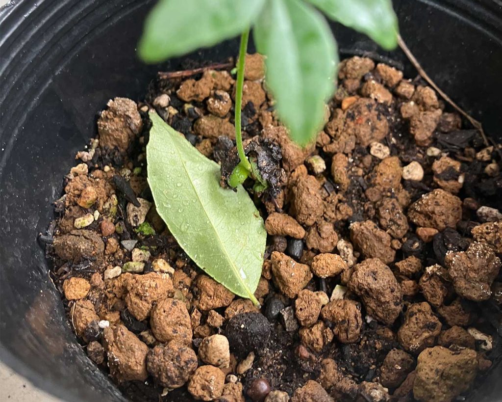 親株の葉っぱが子株に落ちていました。このままにしておきましょう。今回の結果から、月の平均気温が15℃近くまで下がると葉っぱが落ち始めるのかもしれませんので、このブログを観察の記録としておきます。また来年も「15℃近くなったら葉っぱが落ちるのか?」というのを忘れずに思い出したいです。