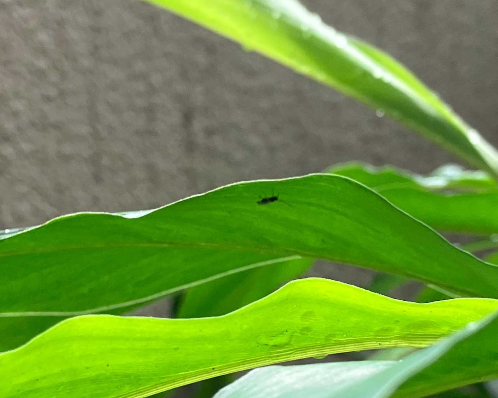 最後に目撃したのが10月末に雨宿りをしている彼です。カルダモンの葉っぱの裏側で雨宿りをしております。ゆっくりしていってください。