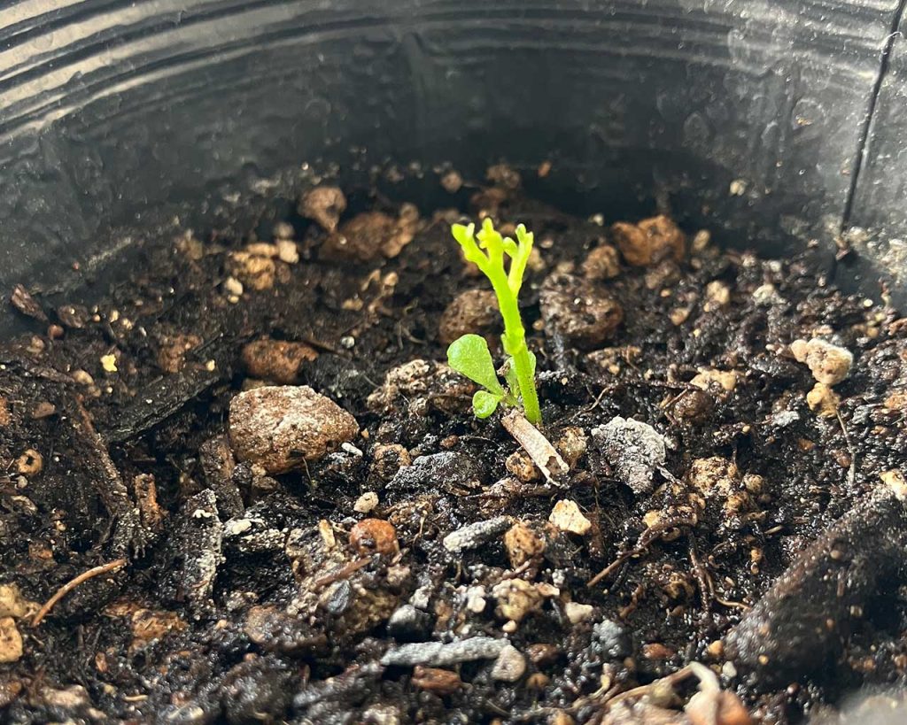 12月に入りました。カレーリーフの種が室内で発芽しました。