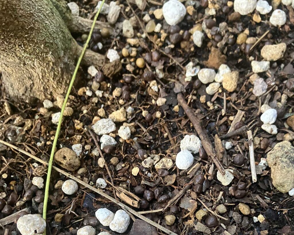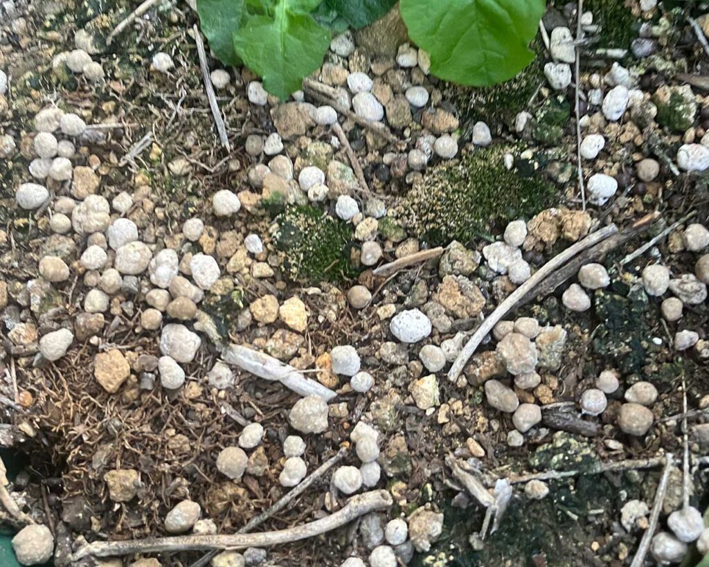 蒔いた後に気が付きましたが、古い肥料を取り除いておけばよかったです。